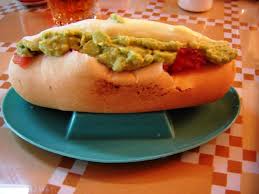g. One of the most popular fast-food items/ late night snack is the “completo.” It is basically a hot dog in a bun drowned in mayonnaise and guac…ewww. Honestly I can not even eat that thing when I am starving after a night out at 5 in the morn…seriously. Observe the picture/